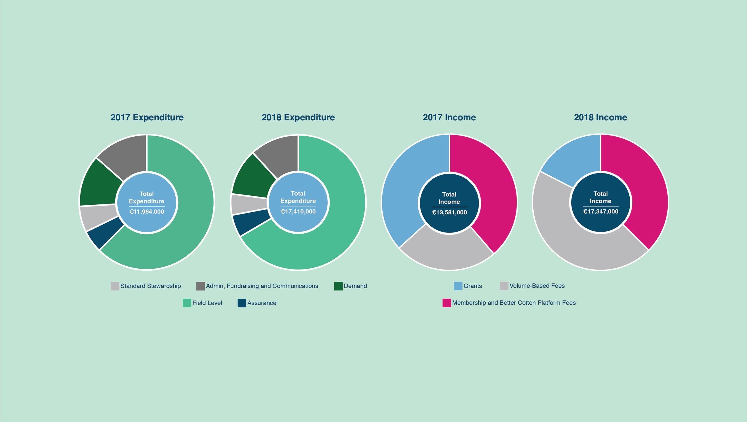 BCI’s core operational costs include the service we deliver to members in overseeing the Better Cotton Standard System, managing governance and supporting supply chain actors to implement the Better Cotton Chain of Custody. Below, we have highlighted where our funding came from and where it was allocated in 2018.