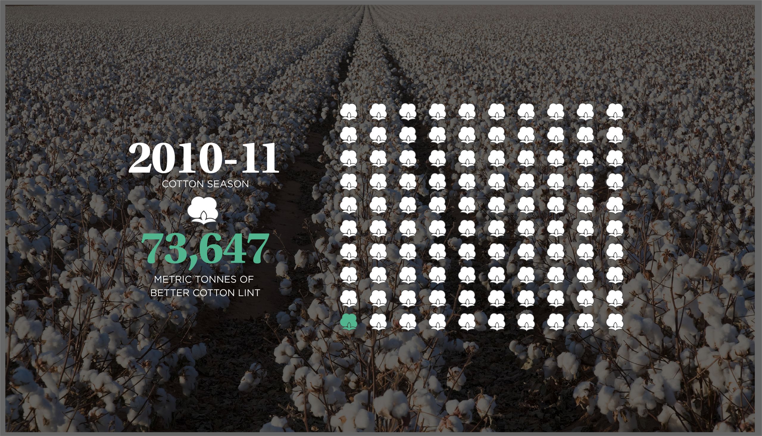 - 10% of all cotton produced globally will be sourced as Better Cotton.